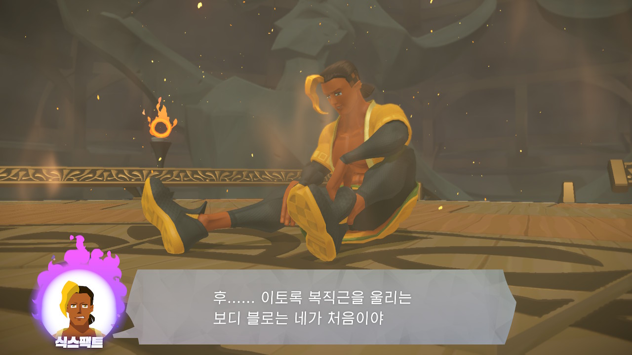 이 때쯤엔 링피트를 완전 적응해서 즐겁게 즐길 수 있는 정도가 됐다. 링피트 스토리에서 중요한 마스터4 캐릭터들을 한 명씩 만나보는 시간이었다. 식스팩트 캐디 정말 일본 쾌남 스타일이라 마음에 들었다. 이쯤 되니 설렁설렁 뛰면 조깅만 가능하지 뛰는 게 안 돼서 빡세게 뛰어야 했다. 운동을 더 많이 해야 했고, 아직도 하체 집중 운동을