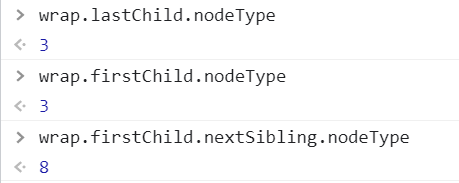 추가적인 실험을 해 봤다. lastChild는 "You must be..."로, 텍스트노드인 3번이다. 그런데 firstChild인 #text도 텍스트노드인 3번이다. firstChild의 nextSibling은 주석인데, Comment Node는 8번이므로 제대로 잡아내고 있다.