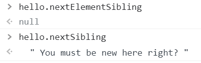 이와 마찬가지로 nextSibling, nextElementSibling 간의 관계, previousSibling, previousElementSibling 간의 관계, firstChild, firstElementChild 간의 관계, lastChild, lastElementChild 간의 관계도 위와 비슷하다.