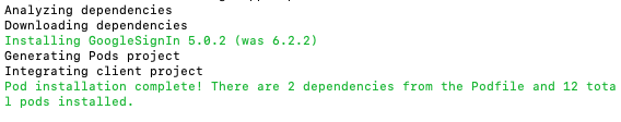 FirebaseAuth와 GoogleSignIn을 넣고 pod install도 마쳐서 모든 의존성들이 다 설치된 상황이었다.