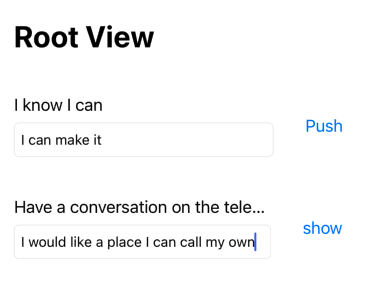 그렇기 때문에 뷰 컨트롤러 간 이동을 하는 데에 현재 내비게이션 컨트롤러에 pushViewController를 직접 호출하는 것보다는 show 메소드를 쓰는 것이 좋은데, 그 이유는 show 메소드를 사용하면 시스템이 다음 뷰 컨트롤러로 뭘 보여줄지 정확히 결정하게 하고, 현재 뷰 컨트롤러와 내비게이션 패러다임을 완전히 분리할 수 있기 때문이다.