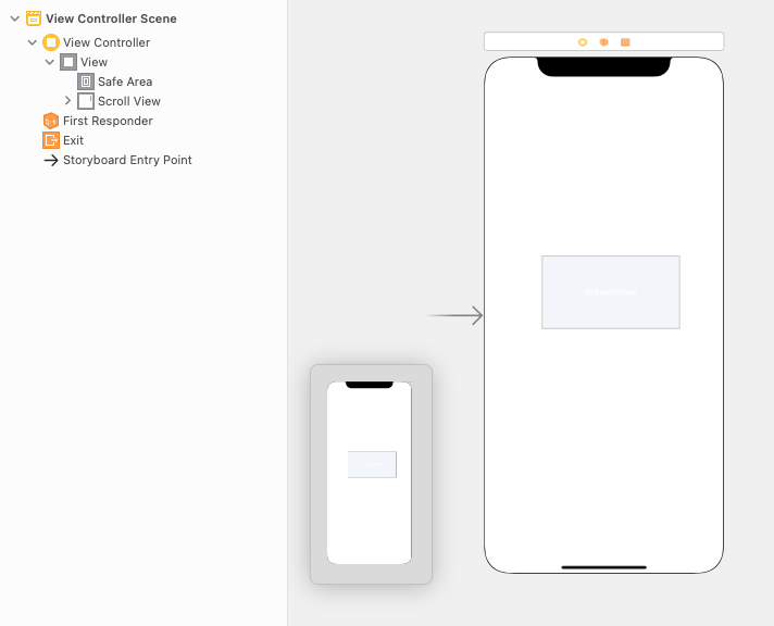 (1) 스토리보드에 Scroll View를 추가합니다. 크기는 딱히 지정 안 해도 됩니다.