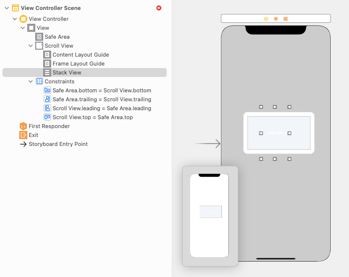 - (1) 일단 최상위 View 아래에 ScrollView 추가, Safe Area에 4방향 constraint 0으로 걸기