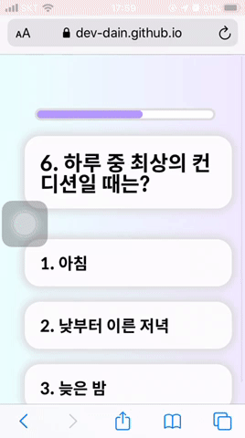 결과: 시작 페이지, 질문 페이지, 결과 페이지 반응형 작업 일단락