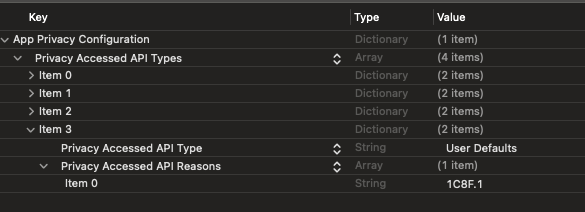 이 글에서는 3, 4번째 항목인 NSPrivacyCollectedDataTypes와 NSPrivacyAccessedAPITypes에 대해 다룬다.