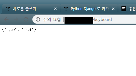 keyboard 함수를 만듭니다. 이것은 사용자가 최초로 채팅방에 들어갔을 때 보이게 되는 것입니다. 사실상 이건 쓸 일이 없어서(더구나 API형이 중지되고 i 빌더로 넘어와서는 쓸 일이 없어짐) 브라우저 테스트를 하기 좋게 간단하게 JsonResponse 를 하도록 해봤습니다.