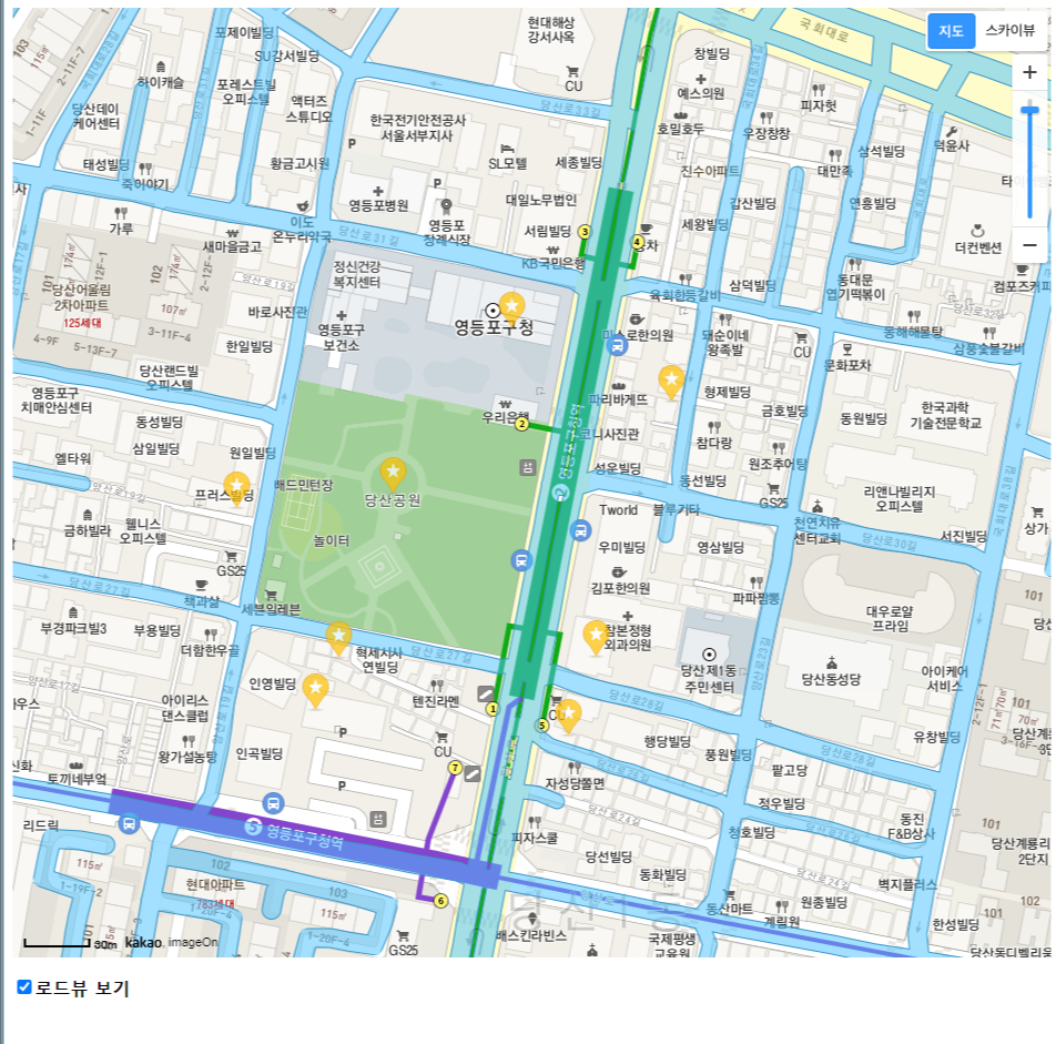 - 로드뷰 보기와 평범한 지도 모드 지원