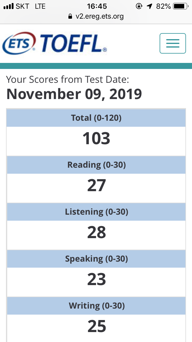 | 토플 2달 공부하고 103점 받기(3) - 스피킹 (8) | 2020.12.30 |