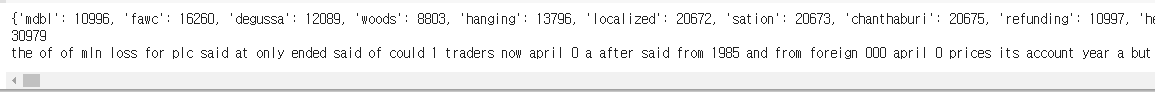 word_to_index = reuters.get_word_index() # 단어와 그 단어에 부여된 인덱스를 리턴