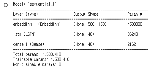 자연어 데이터를 처리하는 것이기 때문에 tf.keras.layers.Embedding 레이어(층)는 필수다. 자연어를 수치화된 정보로 바꾸는 레이어이다. input_dim은 가능한 토큰 개수, output_dim은 임베딩 차원, input_length는 입력 시퀀스 길이다.